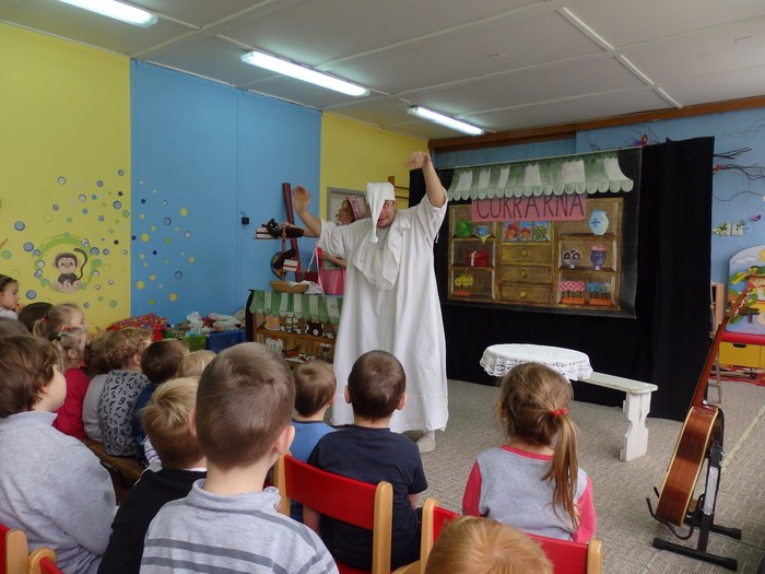 Úvod > Fotogalerie > školní rok 2016/2017 > Cukrárna Tintilivantili - 3.11.2017 divadélko Kůzle 1. a 2.roč.